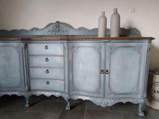 Ein Möbelstück erzählt seine eigene Geschichte. Diese Anrichte, einst in dunklem Holz verborgen, habe ich mit viel Liebe zum Detail in einem aufwendigen Schichtverfahren neu belebt. Wie ein verborgenes Gemälde, das wieder zum Vorschein kommt, wurden die filigranen Verzierungen und die majestätischen Löwenfüße aus ihrem Dornröschenschlaf erweckt. Ich glaube daran, dass jedes Stück eine Seele hat.